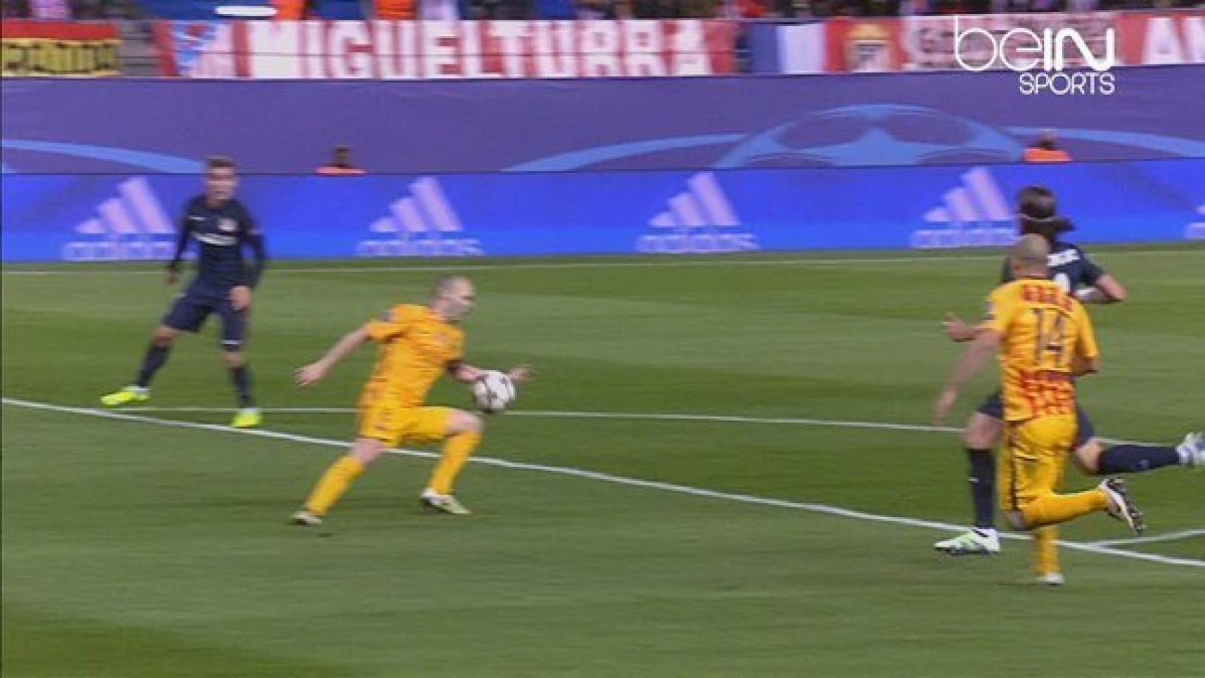 En el último Atlético-Barça de Champions, también en cuartos, esta mano de Gabi dentro del área fue señalada fuera.